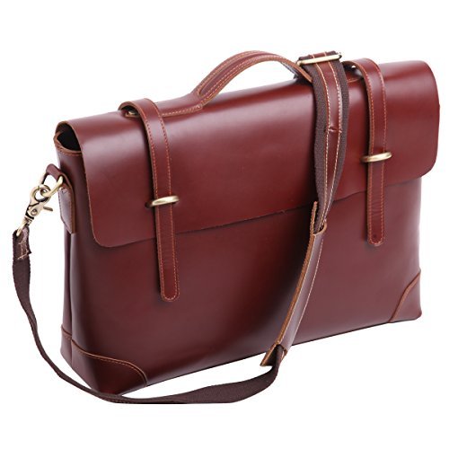 BASIC INFORMATION: Material: 100% Vegetable tanned Leather Weight : 1.5kg Gender: Women & Men Style: Multifunction Leather Briefcase Color : Red-Brown Closure Type: Metal Arched buckle and zip Size approximately (without handle) : 41.2cm L X 9.9cm W X 29cm H PRODUCT FEATURES: 1. Retro Genuine Leather Briefcase. Easy to take office supplies and Suitable for business trip. It Is Also Can Be As A Wonderful And Practical Gift Or Present For Valentine'S Day, Father'S Day, Teachers' Day, Thanksgiving, Christmas, Birthday Or Almost Any Other Occasion. 2. 100% Genuine Leather, Environmental friendly material, Vegetable tanned and Glossy leather. Durable and smooth Brass zipper. Metal Arched buckles in front. Leather cashmere Lining. Detachable shoulder strap. 3. The Product Dimensions Is 41.2cm L X 9.9cm W X 29cm H. Two sections in the main part. A section for files and laptop, another section for ipad ,books or magazines.A zippered bag in the middle. There are also two small pockets and a zippered bag for cards, pen and other small objects PURCHASING NOTES: Please Stored in a dry place when not in use and Clean it with professional leather oil. We promise Lifetime warranty . If you have any problem about the item, Please Do not hesitate to contact us. (Through the order ,you can find out : CONTACT SELLER ) We will be there with you! If you are satisfied with it, your 5 star product review will be highly appreciated.