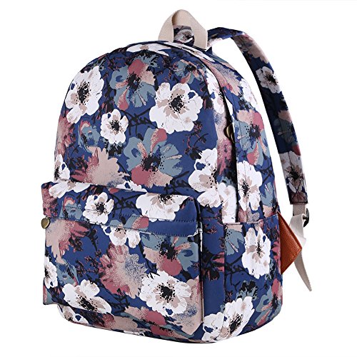 Best Seller! Zicac Unisex Mens Womens Cute Floral Printed Vintage Durable Canvas Satchel Backpack Tablet Rucksack Shoulder School Gym Book Bag Travel Hiking Bag Gift for Teenage Girls/Boys (Blue) Review